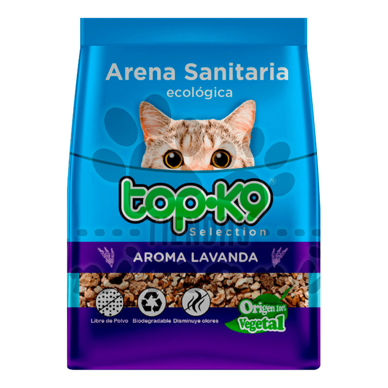 La Arena Sanitaria Ecológica Top K9 es una gravilla vegetal 100% natural, resultado del reciclaje de millones de kg de desechos vegetales que antes se botaban a la basura. Gran poder de absorción Componentes naturales que disminuyen los olores Producto de sus grandes atributos biodegradables y naturales puede ser desechada en el WC en pequeñas cantidades, o usada en la fabricación de compost para su jardín. Aroma lavanda.